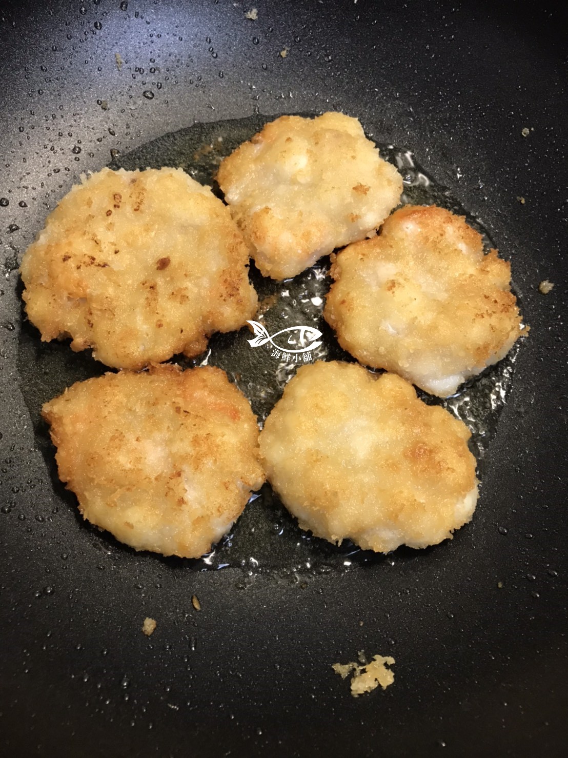 烤:將花枝蝦排退冰後,烤20分鐘左右,表面呈金黃色即可。
